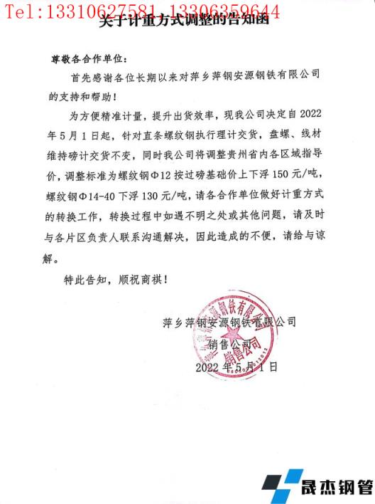免責聲明:本網站(山東聊城晟杰無縫鋼管廠www.hanoilittle.com)刊載的“萍鄉萍鋼安源鋼鐵有限公司關于對貴州區域計重方式調整的告知函”等均源于網絡,版權歸原作者所有,且僅代表原作者觀點,本文所載信息僅供參考。轉載僅為學習與交流之目的,如無意中侵犯您的合法權益,請及時聯系刪除。本網站刊登此篇文章并不意味著本站贊同其觀點或證實其內容的真實性,我們不對其科學性、嚴肅性等作任何形式的保證。如果侵犯了您的版權,請盡快聯系我們予以撤銷,謝謝合作!