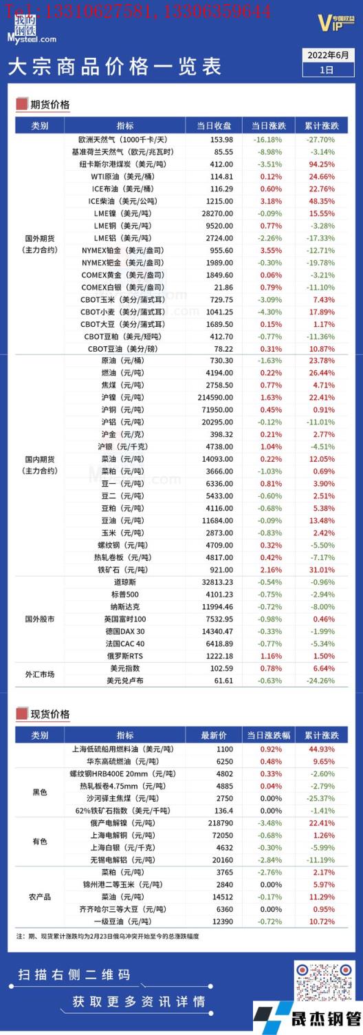 免責聲明:本網站(山東聊城晟杰無縫鋼管廠www.hanoilittle.com)刊載的“俄烏局勢丨大宗商品價格一覽表(6月1日)”等均源于網絡,版權歸原作者所有,且僅代表原作者觀點,本文所載信息僅供參考。轉載僅為學習與交流之目的,如無意中侵犯您的合法權益,請及時聯系刪除。本網站刊登此篇文章并不意味著本站贊同其觀點或證實其內容的真實性,我們不對其科學性、嚴肅性等作任何形式的保證。如果侵犯了您的版權,請盡快聯系我們予以撤銷,謝謝合作!