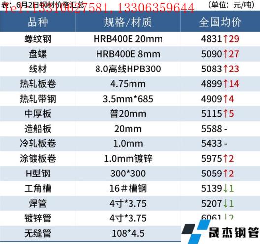 建筑厚壁無縫鋼管:6月2日,全國31個主要城市20mm三級抗震螺紋鋼均價4831元/噸,較上個交易日上漲29元/噸。短期來看,隨著物流運輸恢復,疊加利好政策加持,市場心態明顯好轉,情緒面或將繼續驅動價格反彈。因此預計下周國內建筑厚壁無縫鋼管價格將繼續偏強運行為主。