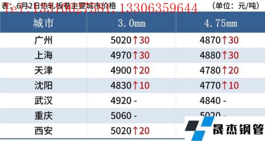 6月2日,國內厚壁無縫鋼管市場價格偏強運行,唐山普方坯出廠價漲30報4500元/噸。2日午后,黑色期貨強勢拉漲,現貨報價繼續上揚,下游剛需采購活躍,交投氛圍濃厚。