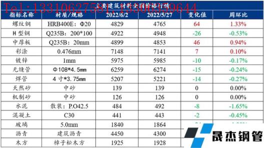 免責聲明:本網站(山東聊城晟杰無縫鋼管廠www.hanoilittle.com)刊載的“建筑原材料周報(5.30-6.2)”等均源于網絡,版權歸原作者所有,且僅代表原作者觀點,本文所載信息僅供參考。轉載僅為學習與交流之目的,如無意中侵犯您的合法權益,請及時聯系刪除。本網站刊登此篇文章并不意味著本站贊同其觀點或證實其內容的真實性,我們不對其科學性、嚴肅性等作任何形式的保證。如果侵犯了您的版權,請盡快聯系我們予以撤銷,謝謝合作!