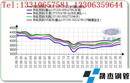 七月份國內(nèi)帶鋼市場(chǎng)呈現(xiàn)震蕩下行趨勢(shì)。月初帶鋼市場(chǎng)價(jià)格整體趨弱運(yùn)行,低價(jià)資源成交尚可,期貨市場(chǎng)寬幅震蕩,終端逢低補(bǔ)庫,高價(jià)成交疲軟。月中市場(chǎng)價(jià)格持續(xù)下行,整體成交偏弱,淡季效應(yīng)顯現(xiàn)導(dǎo)致市場(chǎng)價(jià)格大幅走低,下游商貿(mào)情緒觀望為主。北方地區(qū)小窄帶方面,月末隨期貨震蕩走高,倒掛情況稍有緩解,為維持訂單及正常運(yùn)轉(zhuǎn),被動(dòng)維持生產(chǎn)。7月帶鋼庫存持續(xù)小幅下降,無縫鋼管廠家產(chǎn)量也有所下降,需求端仍未得到改善。南方地區(qū)因疫情反復(fù),加之目前正處于傳統(tǒng)淡季,商貿(mào)多以觀望為主,隨期貨盤整運(yùn)行,市場(chǎng)商貿(mào)心態(tài)不穩(wěn),多以降庫為主,終端下游市場(chǎng)仍不景氣,觀望態(tài)度濃厚,實(shí)際需求延續(xù)偏弱,加之下游開工維持低位,帶鋼底部支撐不足。截止至7月29日,華北地區(qū)唐山小窄帶報(bào)價(jià)主流為3950元/噸,唐山355系窄帶鋼主流報(bào)價(jià)為3860元/噸,天津355系窄帶主流報(bào)價(jià)為4130元/噸,華東地區(qū)無錫355系窄帶主流報(bào)價(jià)為4050元/噸,華南地區(qū)廣州355系窄帶主流報(bào)價(jià)為4030元/噸。