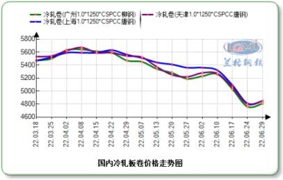 目前由于世界經(jīng)濟(jì)滯脹風(fēng)險(xiǎn)上升,全球加息大潮洶涌澎湃,外部不確定因素明顯增加,需求收縮與供給沖擊交織,結(jié)構(gòu)性矛盾和周期性問題疊加,國內(nèi)經(jīng)濟(jì)持續(xù)恢復(fù)基礎(chǔ)不穩(wěn)固。7月份國內(nèi)正處于傳統(tǒng)季節(jié)性需求淡季,北方面臨高溫天氣,南方面臨雨季影響,對戶外施工項(xiàng)目產(chǎn)生明顯影響,導(dǎo)致整體厚壁鋼管需求恢復(fù)緩慢。后美聯(lián)儲(chǔ)宣布加息75個(gè)基點(diǎn),低于市場預(yù)期100個(gè)基點(diǎn),從而帶動(dòng)市場有所反彈,使得冷軋板卷市場呈現(xiàn)先跌后漲行情。